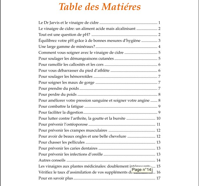 Dans cet ebook, vous y découvrirez plus de 30 astuces pour utiliser le vinaigre de cidre pour améliorer votre état ou soulager certains problèmes de santé.