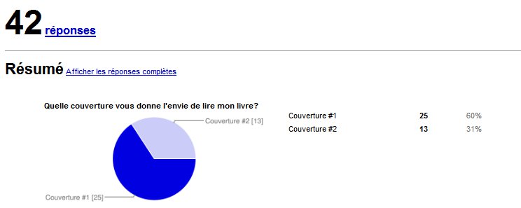 Voici les résultats de mon petit sondage sur votre choix concernant la future couverture de mon livre.